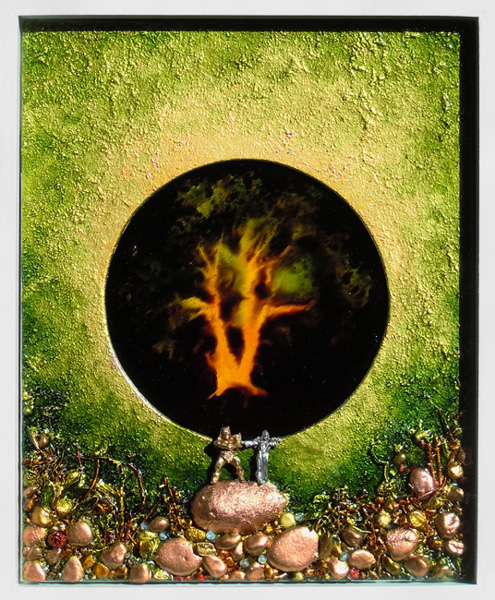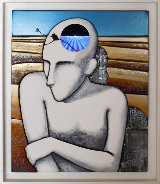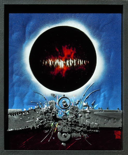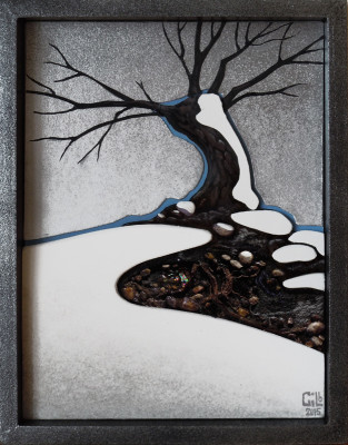 PEINTURES Techniques mixtes : bois, carton, verre avec objets collés, naturels ou artificiels, peintures acryliques et métalliques, hologrammes.TAILLES variéesDate 2015-2016